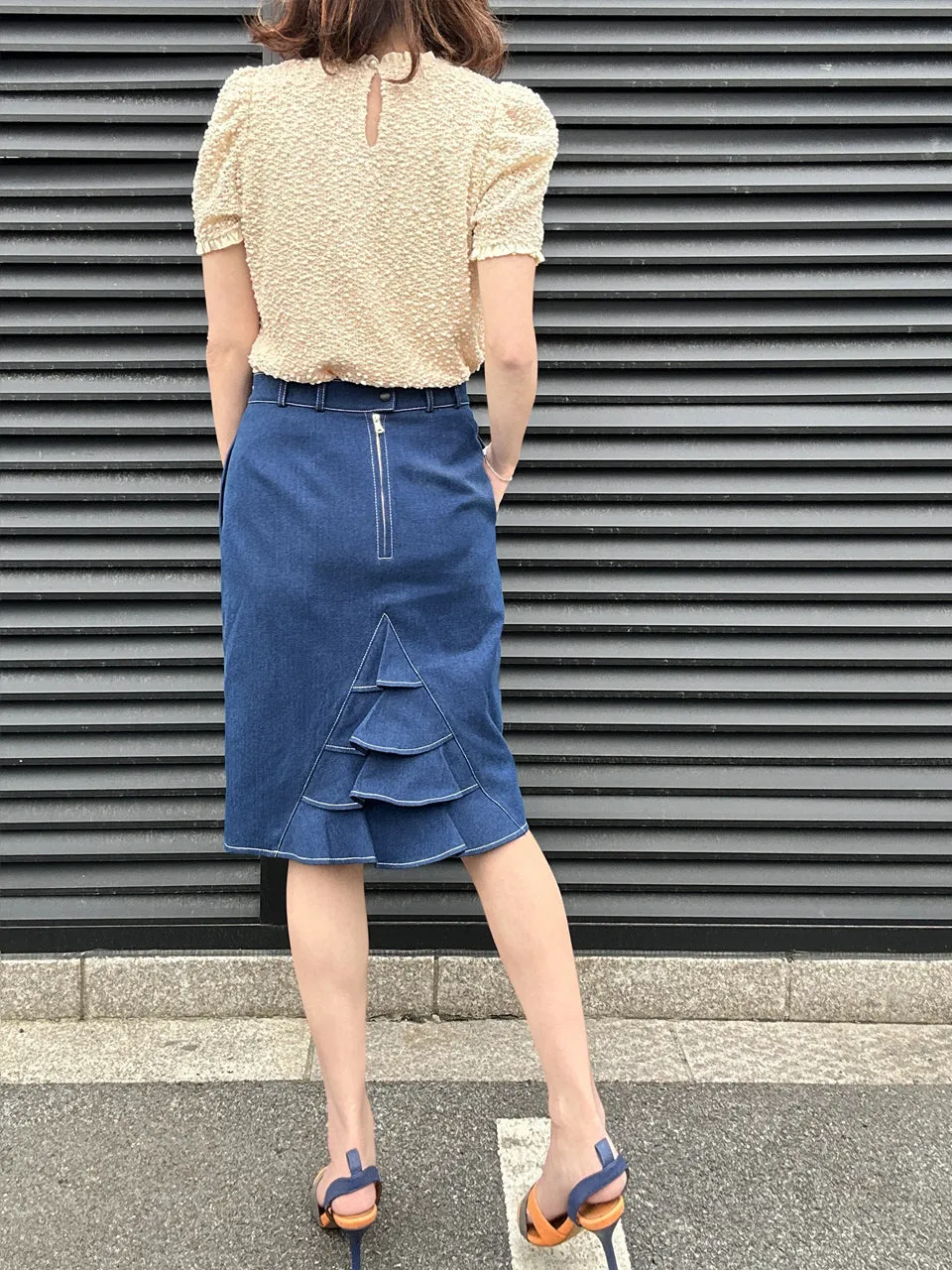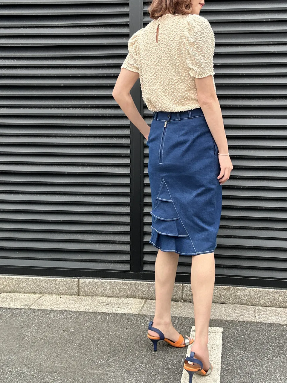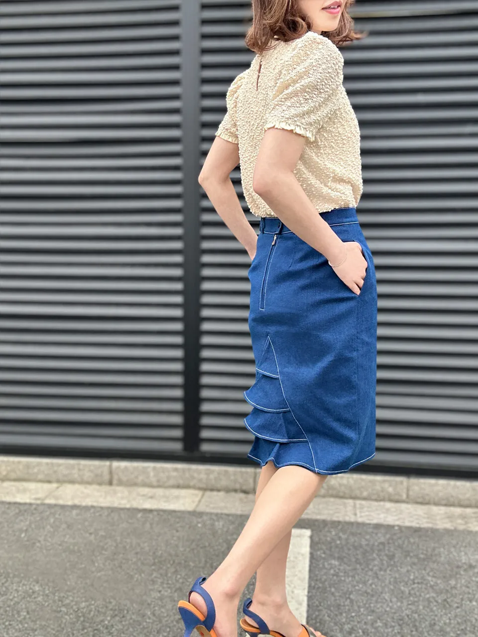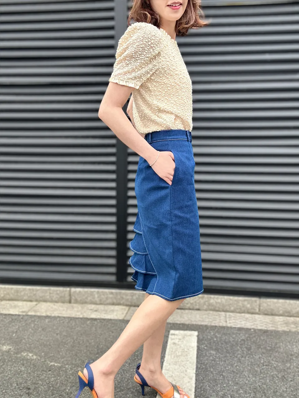 Made of our gorgeous signature guipure, here you go is a very feminine top with a delicate ruffled crew neck and matching sleeve hem for you to feel glamorous and confident. Slightly romantic with a touch of fancy thanks to its slightly pleated shoulders to create a puffy sleeves, This is the ideal top to elevate your everyday wardrobe. Available in two different fabrics: white knit and custard lurex guipure.