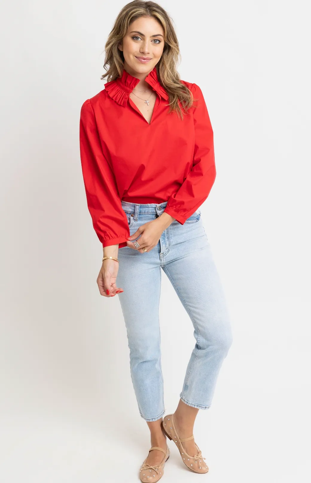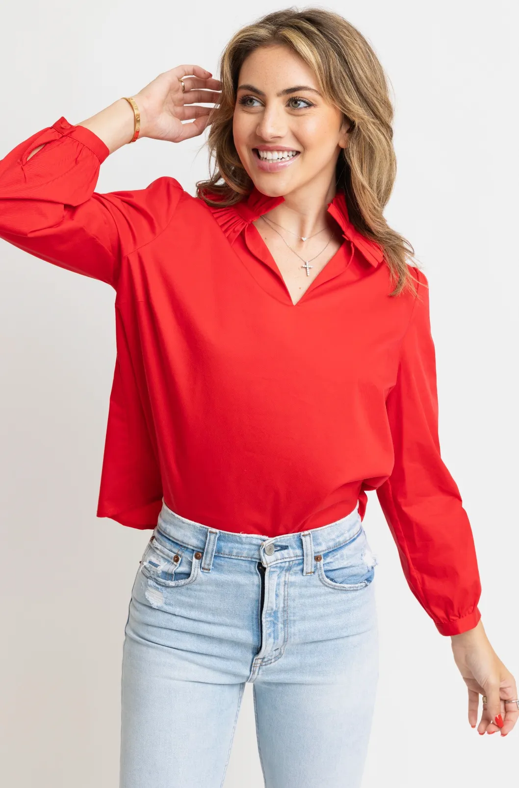 RED HOT and ready to party! Y'all this top is absolutely gorgeous. Whether you want to wear for a Georgia football game or add a pop of color to your Fall wardrobe (THE color!) ... or even ahead and stock up in your closet for Christmas. You'll wear and love for years to come...